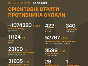 Генеральный штаб Вооруженных сил Украины 22 августа 2025 года опубликовал новые данные о потерях российской армии в ходе боевых действий на Подробнее